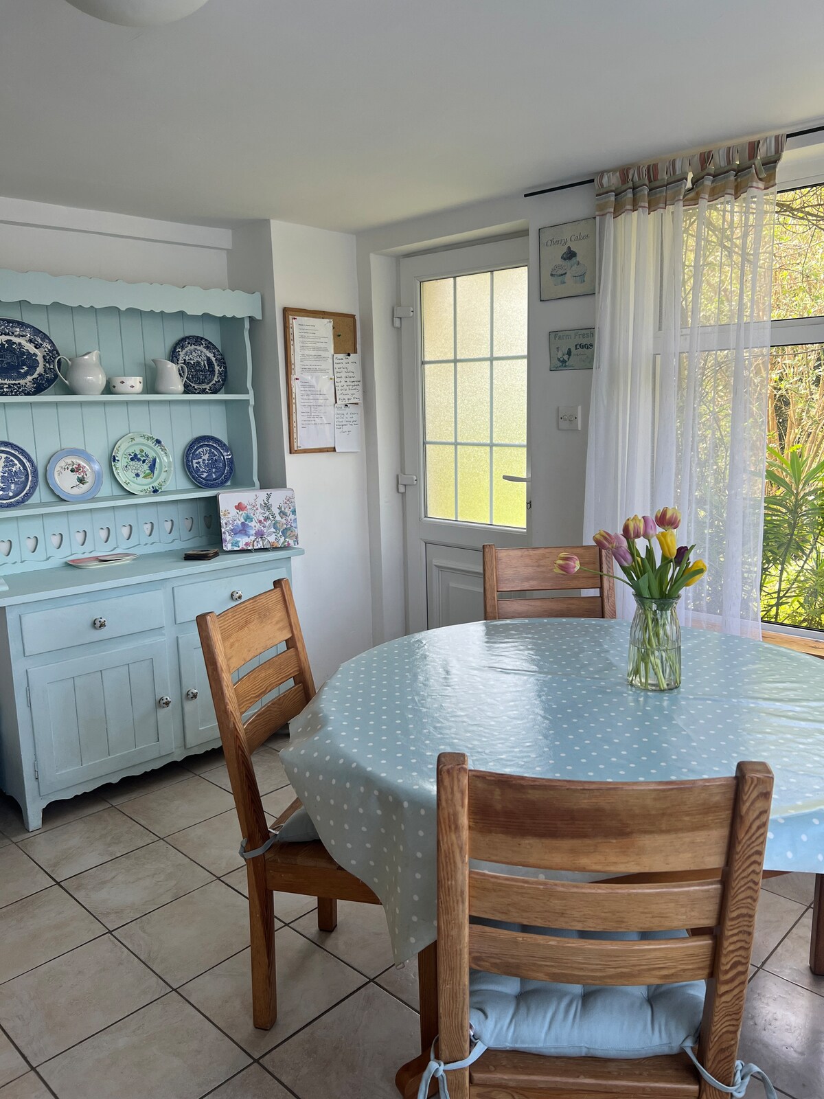 The stone cottage which is over 250 years old has been recently renovated and retains its traditional style: stone and white-washed walls, inglenook fireplace with wood burning stove. There are also modern conveniences: heating, Wifi, TV with Netflix and fully equipped kitchen. Downstairs there is an open-plan kitchen, dining and living area with a vaulted ceiling and the bathroom. Upstairs is a cosy double bedroom. Outside guests have their own patio and garden area with seating
