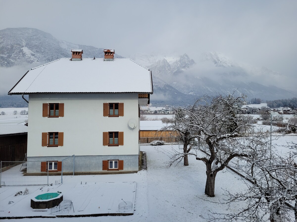 Situated on the outskirts of a Tyrolian mountain village this place offers you a wonderful-broad view. The apartment, lovingly combining tradition and modernity will let you calm down and recharge your batteries instantly. A closeby cable car enables you to all kinds of mountain sports in summer and winter. Yet- even those, who just "stay and relax" will feel at home. WIFI, TV, BT-boxes, parking space are available free of charge; for the Sauna we take a small feey. Kitchen is well equipped .