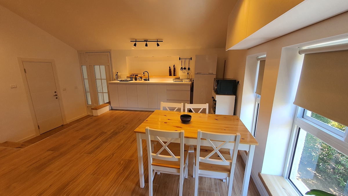 A villa in a kibbutz atmosphere, a place where you can enjoy a unique experience that is not found anywhere else. Enjoy the green nature and the outdoors. The stream is a short walk away. A spacious place suitable for families, with a place to spend time together. A fully equipped, modern kitchen with a large island. Next to it is a dining area. A large living room with a sofa that opens to a double bed. A particularly large garden, a balcony with a large dining table, well-groomed with fruit trees, seating areas, a barbecue. In the kibbutz - pizzeria, boutique ice cream parlor, Thai food truck, Jahanun on Saturday. For lovers of hiking and nature and families who want peace and a relaxed atmosphere.