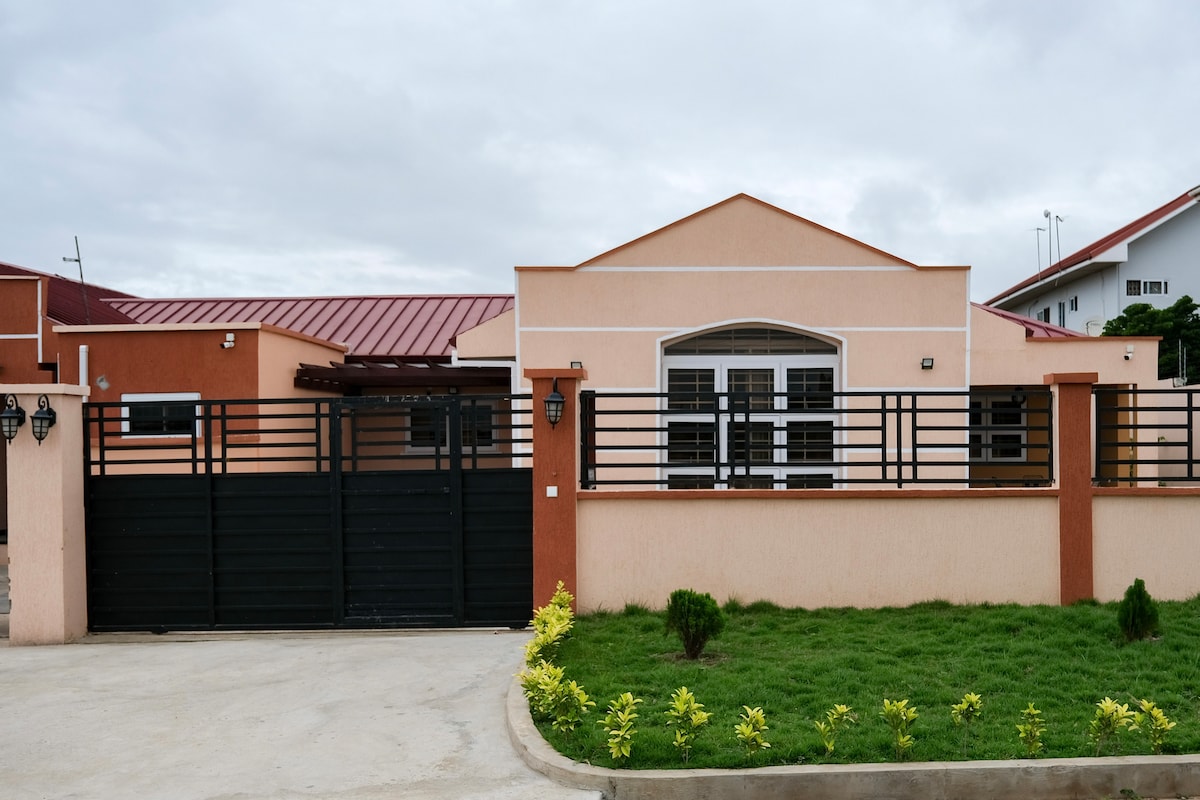 Relax with the whole family at this peaceful place to stay. Our property is conveniently located in Community 26, Tema, off N1 (Motorway Extension), behind Community 25 Palace Mall . The area boasts a wide array of stores, restaurants, and services within walking distance. Each of the eight units comes fully furnished and equipped with three LG AC units, a washing machine, stainless steel appliances, three fans, comfortable king size beds, as well as kitchen and dining utensils. Free Parking.