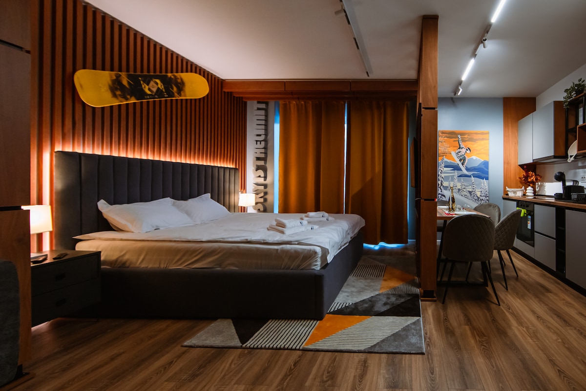 Înconjoară-te cu stil în acestJacuzzi Urban Heaven Studio, o oază urbană unde confortul și rafinamentul se întâlnesc pentru a vă oferi o experiență de neuitat. Cu facilități premium, inclusiv un jacuzzi modern, vă invităm să vă destindeți și să vă bucurați de o escapadă urbană într-un spațiu gândit cu atenție pentru a satisface cele mai exigente gusturi.