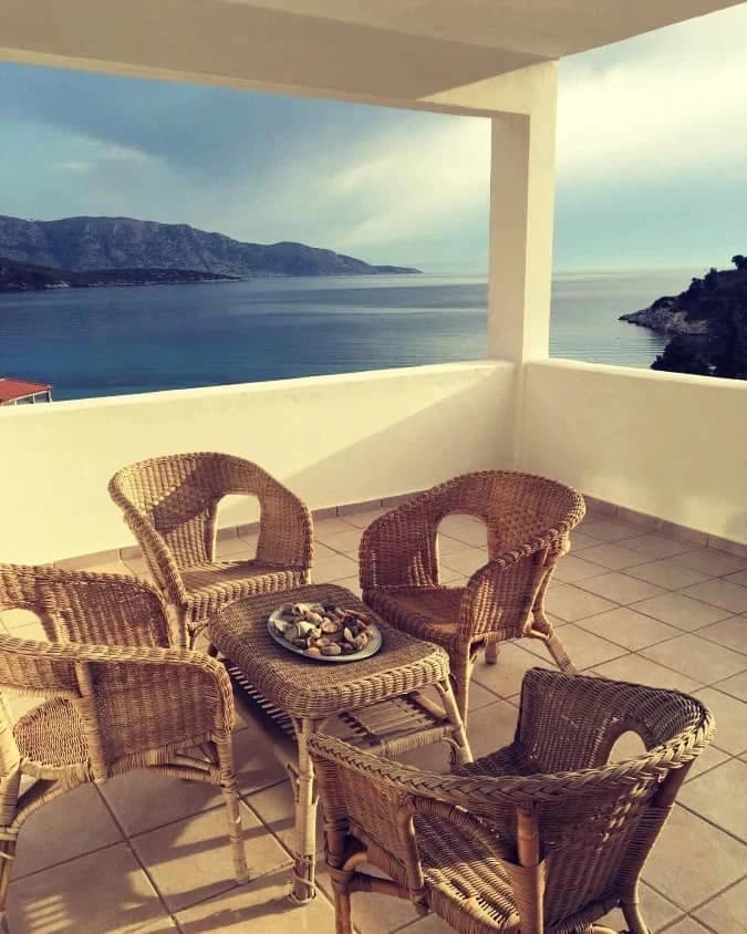 1 km to the sea, 300 meters to the mountains, 1 km to the national park. You can see the Greek islands, the national park bays, and the Zeus water cave. You can hike in the mountains and enjoy the fresh air... the private villa is 500 square meters in a 1000 square meter garden.