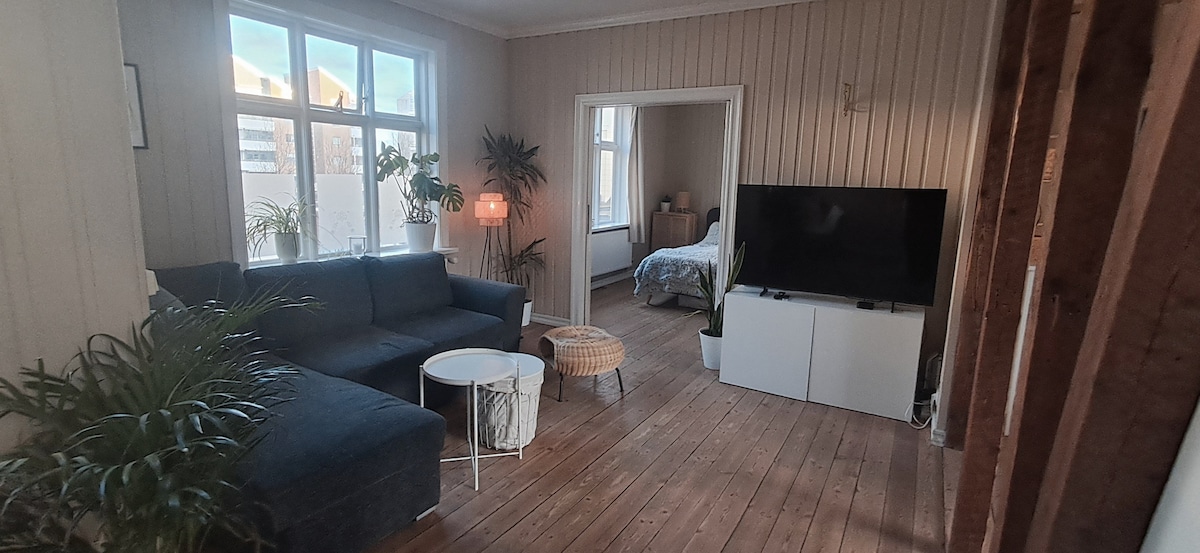 Beautiful apartment in the downtown area of Reykjavik. Newly renovated with new beds and furniture. Great location in a lovely quiet street, 2 minute walk from the cities main restaurants, shops and Reykjavik harbour. Close to landmarks such as Hallgrímskirkja church, Harpa and Solfarid. The apartment has two bedrooms that sleep two each. There is also a sleeping sofa in the living room so there can be a total of 6 guests at a time. Perfect for a family, two couples or a group of friends.
