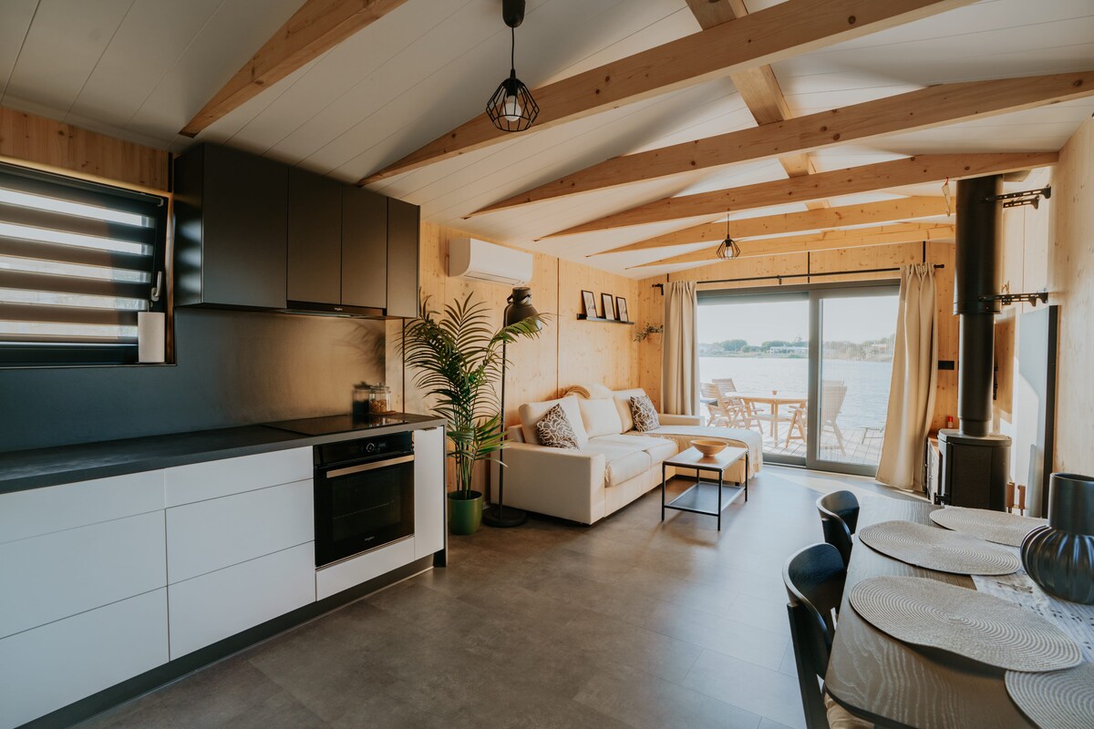 This tiny home offers the comfort of cozy bedrooms, well-equipped kitchen, and living space with large windows. However, undoubtly the best part of your stay will be the large private terrace offering amazing views of the Danube river, its rich birdlife, large ships passing in the distance, all complete with the most unforgattable sunsets. During your stay you can enjoy wide variety of water sports, motorboat tours, or refreshments in the sailing club bar. Beautiful moments await you here:)