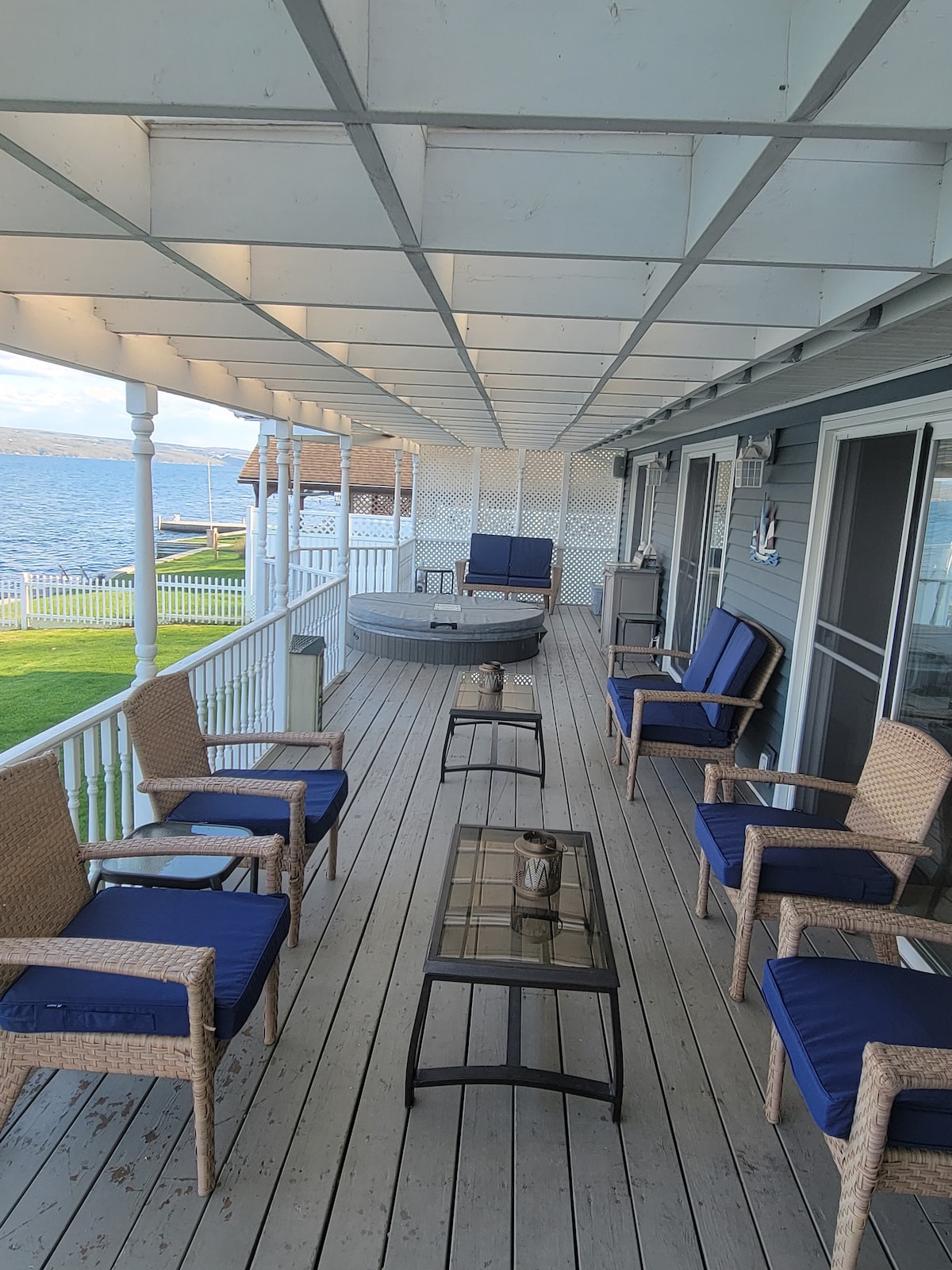 Welcome to our beautiful lake house on Seneca Lake! The spacious lake level oasis has spectacular views and outdoor space! We offer all the indoor and outdoor amenities you desire on a vacation. Relax on the covered deck or in the sunken hot tub. Enjoy lots of patio seating with built-in kitchen, sink, and outdoor refrigerator. The dock, 100' of level lawn, and canoe and kayaks make this your best vacation yet. Come experience a lake week near all the best wineries and breweries in the region!