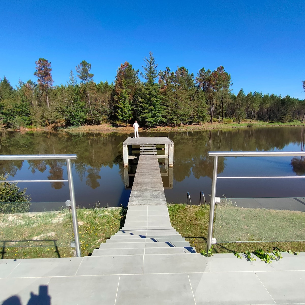 A floating lodge, lost in the middle of a private pond in the middle of nature. Here, no neighbors, no noise, just water, calm and koi carp gliding beneath your feet. Equipped with every comfort: double bed, sofa bed, kitchen, terrace, barbecue, video projector with Netflix/Prime, satellite wifi. Access by motorboat. No swimming, no fishing: just the pleasure of slowing down.
