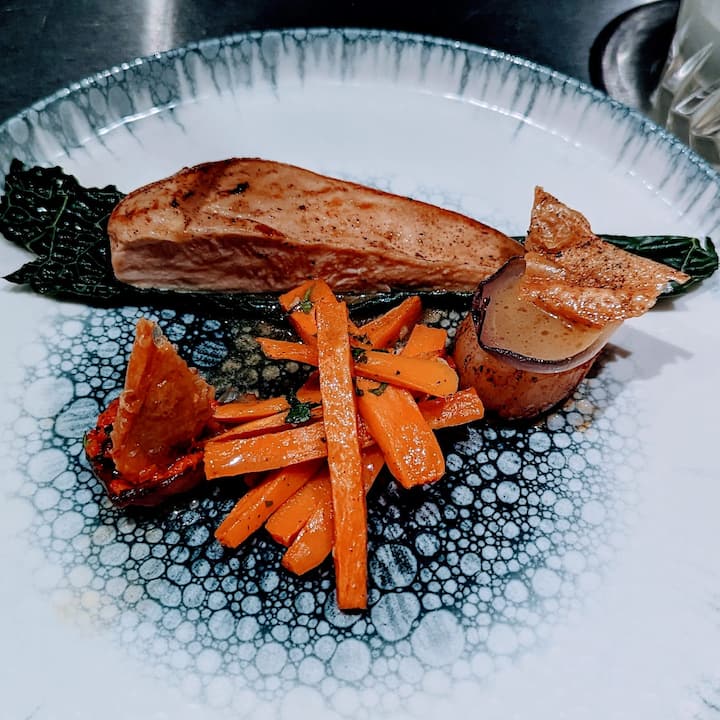 Enjoy a creative and gourmet seasonal menu. 1 starter, 1 main course, 1 cheese, 1 dessert 3 suggestions of dishes Scallops from Brittany, homemade lamb's lettuce oil, bisque, roasted hazelnut Homemade ravioli from the Chef spinach ricotta, royal shrimp, chablis sauce, sourdough bread crouton with olive oil, homemade lamb's lettuce oil Tournedos of Rossini beef - beef: Charolais or Aubrac, foie gras from the South West PGI Extra) - veal stock sauce, glazed carrots, sweet potato gratin