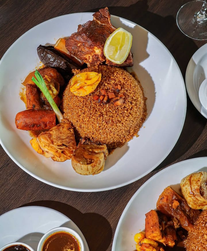 rice cooked in its broth with sweet spices, fish stuffed with parsley and melting vegetables