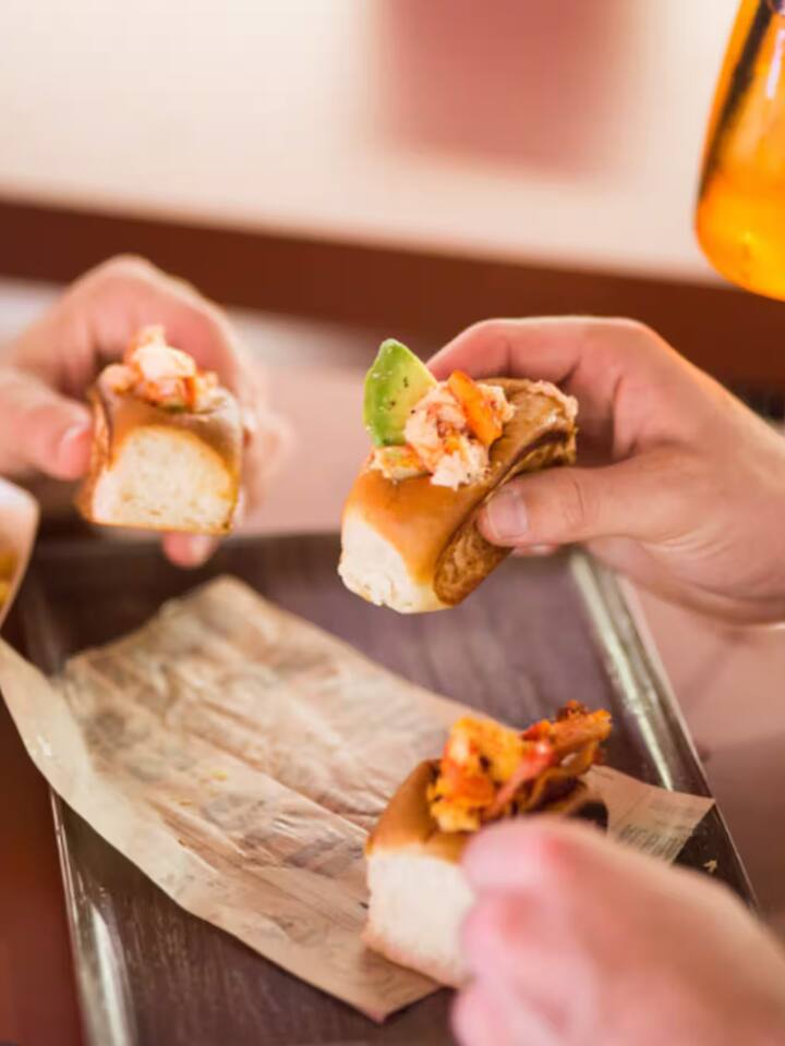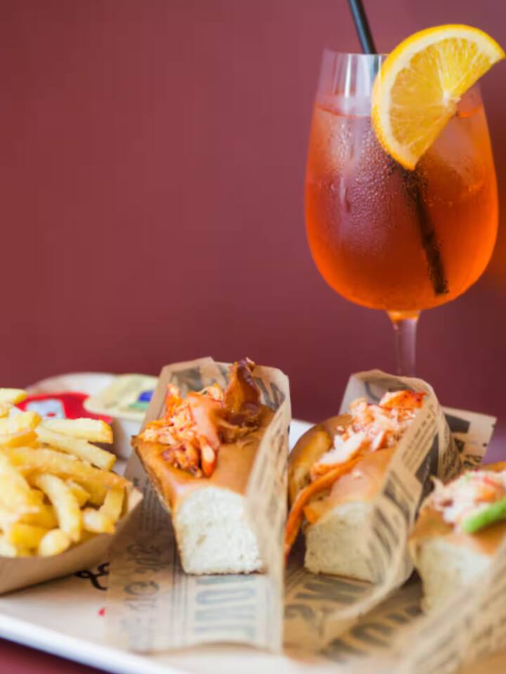 Three mini rolls with Maine lobster, served on artisanal bread Made in Italy, accompanied by classic chips or sweet potatoes and a spritz to complete the experience.