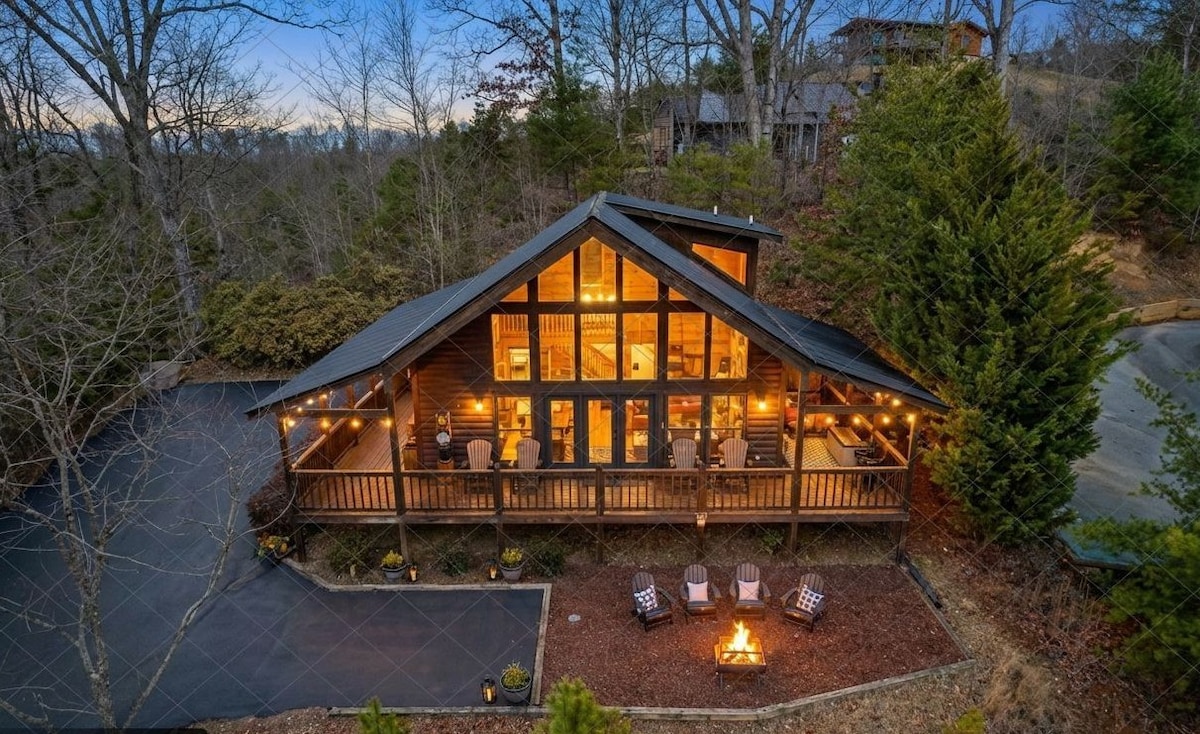 Your Elegant Mountain Adventure Awaits! Avalon Ridge is a breathtaking, private, modern cabin, perched high in the Smoky Mountains, with unparalleled views! The expansive bedroom features a stone fireplace and luxurious soaking tub, the woodland loft is surrounded by old-growth hardwoods, and floor to ceiling windows showcase the view from anywhere in the cabin! Enjoy sunrise from the breakfast perch, or unwind with a luxurious soak in the private hot tub. Reserve this mountaintop retreat today!