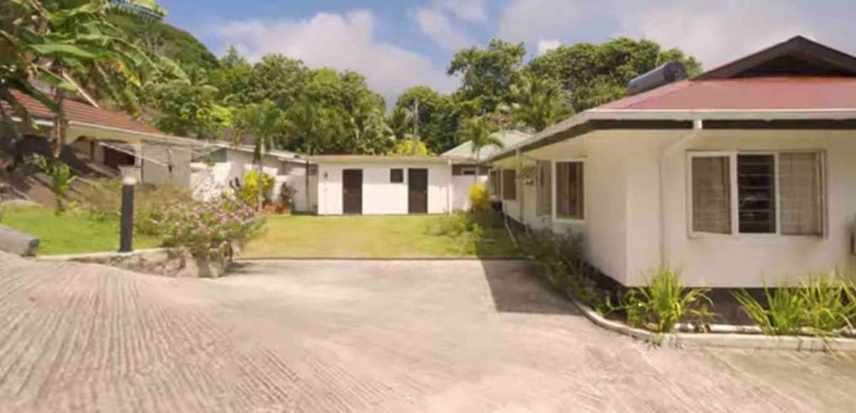A jewel of 60sqm with large bedroom and bathroom. The veranda overlooks the exotic garden Gazebo stone BBQ. Situated in S. Mahé on Intendance road which leads to the powdery white Intendance Beach 1Km long and turquoise blue seas - 15 mins walk or 5 mins by car. Gemma our reliable housekeeper works for us since 21 years, the caretaker Sohel sleeps at the property and guests can feel safe at all times. All rooms have aircon & safe. Bus stop is 5 mins away but we suggest a car rental.