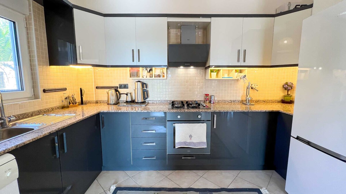 You can easily accommodate 7-8 people in Villa Lasera, located in the city center. Offering unique architecture and spacious living spaces (Villa Lasera) is within walking distance to the Fethiye Coast. The master bedroom has a 180x200 cm bed, bathroom, toilet and a luxury bathtub. The king bedroom has a 180x200 cm bed, bathroom, toilet, a luxury bathtub and an inner garden. There is a single bed in the children's room on the 2nd floor. Downstairs bedroom has a double bed and bathroom, toilet, and underfloor heating in winter
