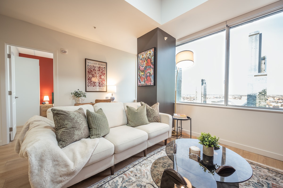 This special suite is close to everything, making it easy to plan your visit. Whether you are here for business, proximity to the airport for travel or to relax for a few days. All the luxury of high end hotel, with the feeling of home. This suite is immaculately clean and has 9ft ceilings with lots of natural light. There is a variety of specialized pillows with a quality mattress and linens to optimize sleep. Along with a specialty coffee machine, in-suite laundry and two Roku TV's.