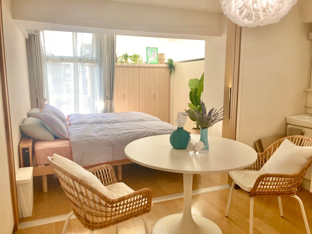 5 min. to Shinjuku Sta, 1 double bed for 2 people.