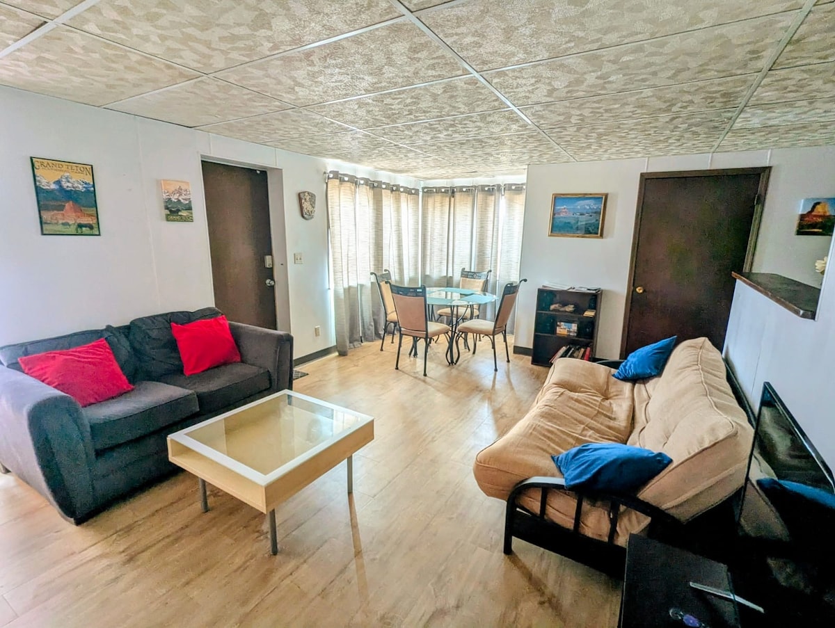 Comfortable, serene 2-bedroom home conveniently located off of HWY 287, nestled in the cottonwoods, with an inspiring view of the Wind River mountain range. This recently custom-renovated, unique, and quiet property features: WiFi; premium queen beds; a full kitchen; walk-in shower; washer/dryer and laundry amenities; fireplace; workspace; RV/Electric Vehicle hook-up; plenty of seating/eating space; and, is kid/pet friendly. It’s a perfect getaway to visit, stop over, or watch the world go by.