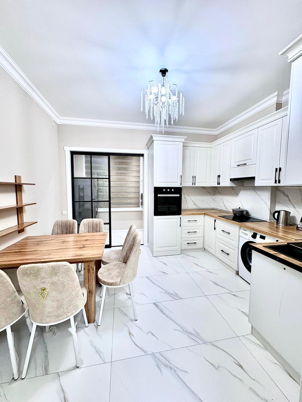 Welcome to the luxury apartment located in Al-Farabi residential complex near the square. The apartment is newly renovated, has everything you need for a long and comfortable stay: all household appliances, high-speed Wi-Fi internet, cable TV, 2 beds, there is also a double folding sofa for guests, all the necessary furniture, utensils for cooking and eating.