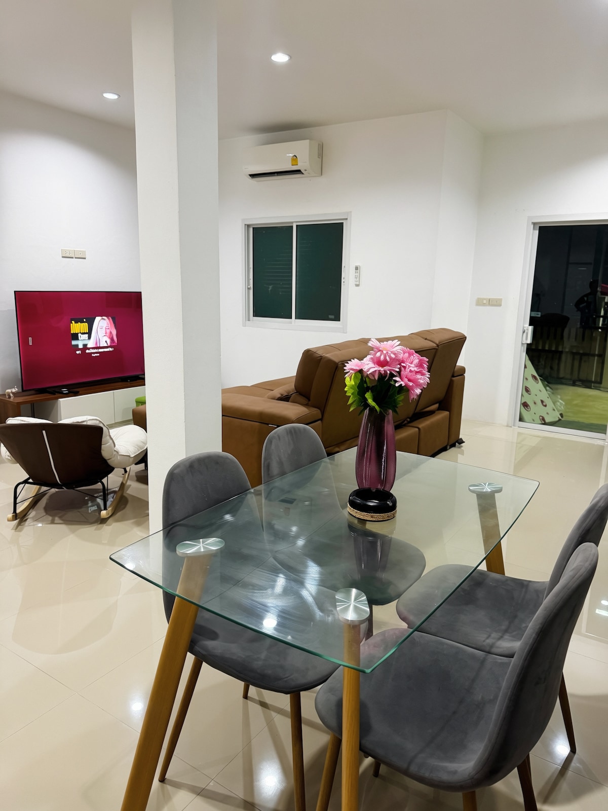 3bed, 3toilet, 1kitchen, 1living room. car park availiable in home. A relaxing family getaway. Spacious, peaceful, and safe. Close to J-PARK, Proto Market, 7-11, CJ MORE, and Tiger Zoo. Conveniently located next to the motorway, easy access to attractions like Pattaya, Bang Saen, and the Tiger Zoo. Fully furnished, complete with kitchen and living room. There's a seating area in front of the house for relaxing, chatting with friends or family – everything you need for a truly private getaway.