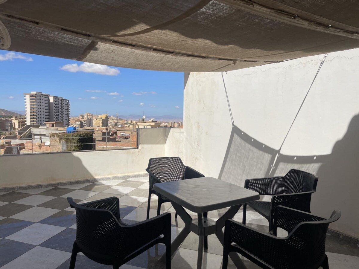 Appartement T4 avec terrasse sur jardin – 15 min à pied du centre ville. Bienvenue dans ce charmant appartement T4, idéalement situé à seulement 15 minutes à pied du centre-ville de Tlemcen. Calme, lumineux et confortable, il offre un cadre parfait pour se reposer tout en restant proche des services, des sites historiques et culturels. Vous allez adorer • Calme et verdure • La terrasse idéale pour vos petits-déjeuners en plein air • Selon possibilité, déguster des plats traditionnels maison
