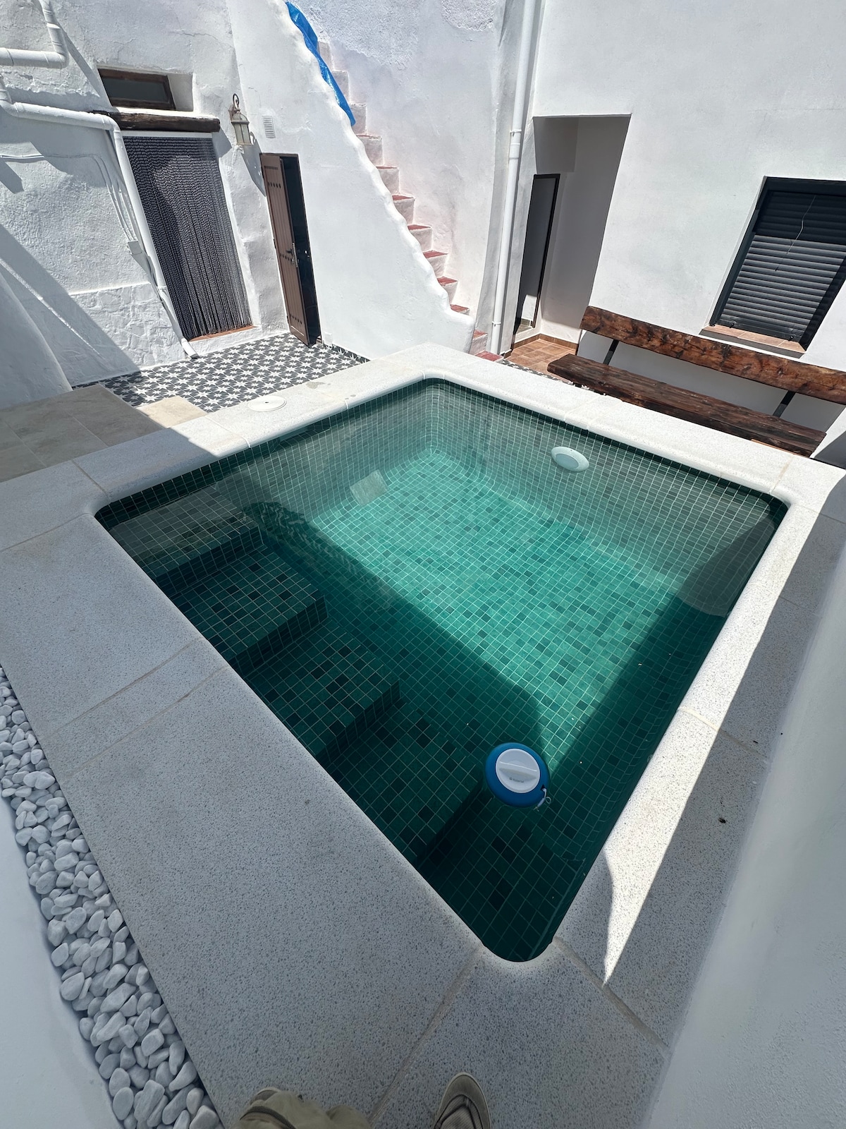 It is located in the heart of nature, within the Sierra de Huétor Nature Park. In the surrounding area, you can enjoy hiking, photography, climbing or mushroom picking. The apartment is spacious and bright (110 m²) and has a 250 m² private courtyard/garden. It features a saltwater pool with a hot tub area and waterfall (closed from 1 November to 1 March). Air conditioning, heating in all rooms and a wood-burning stove in the living room. Fully equipped, self-contained kitchen measuring 25 m².