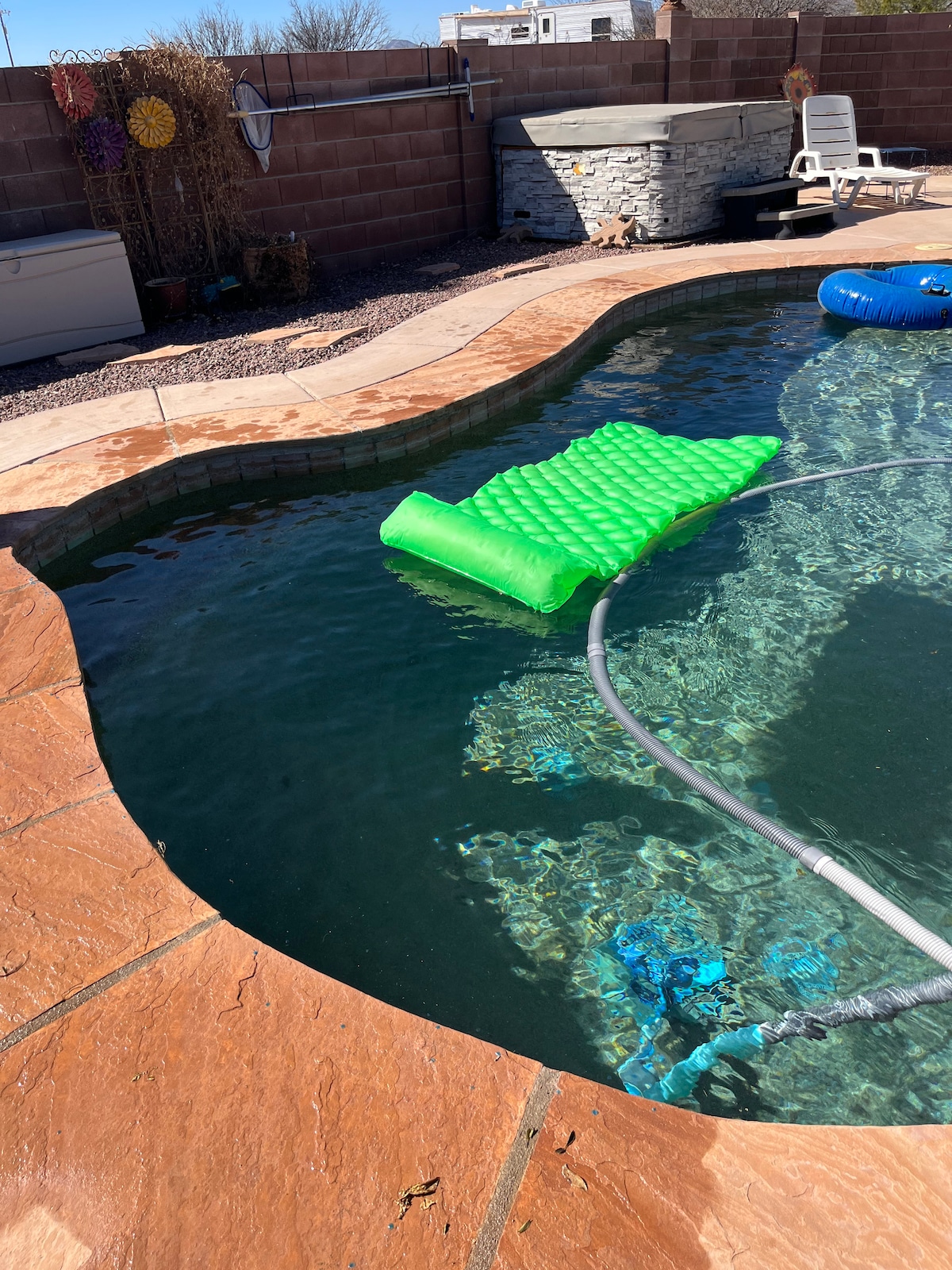 Relax with the whole family at this peaceful, spacious and very cozy home with a private pool and spa located in the Sierra Vista Country Club Estates. This home, that has been in our family for 20 years, is located on the Pueblo De Sol Golf Course. We have yard games including a life size connect four and corn hole, a BBQ grill, fire pit and enough seating for all of your family and friends to get comfortable, enjoy the incredible Southern AZ weather, eat together and make lasting memories!