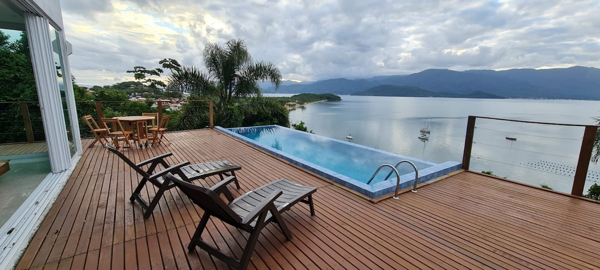 Located in the most charming neighborhood of Floripa, Ribeirão da Ilha, this house has a breathtaking SEA and mountain VIEW, which integrates with the infinity pool and large deck. It has all the spacious, integrated rooms overlooking the sea. Barbecue, industrial stove, wood-burning and conventional, fireplace, full kitchen, 4 en-suites plus 2 bathrooms, parking, fitness center, zen space, are just some of the wonders that this house offers for your comfort and leisure.