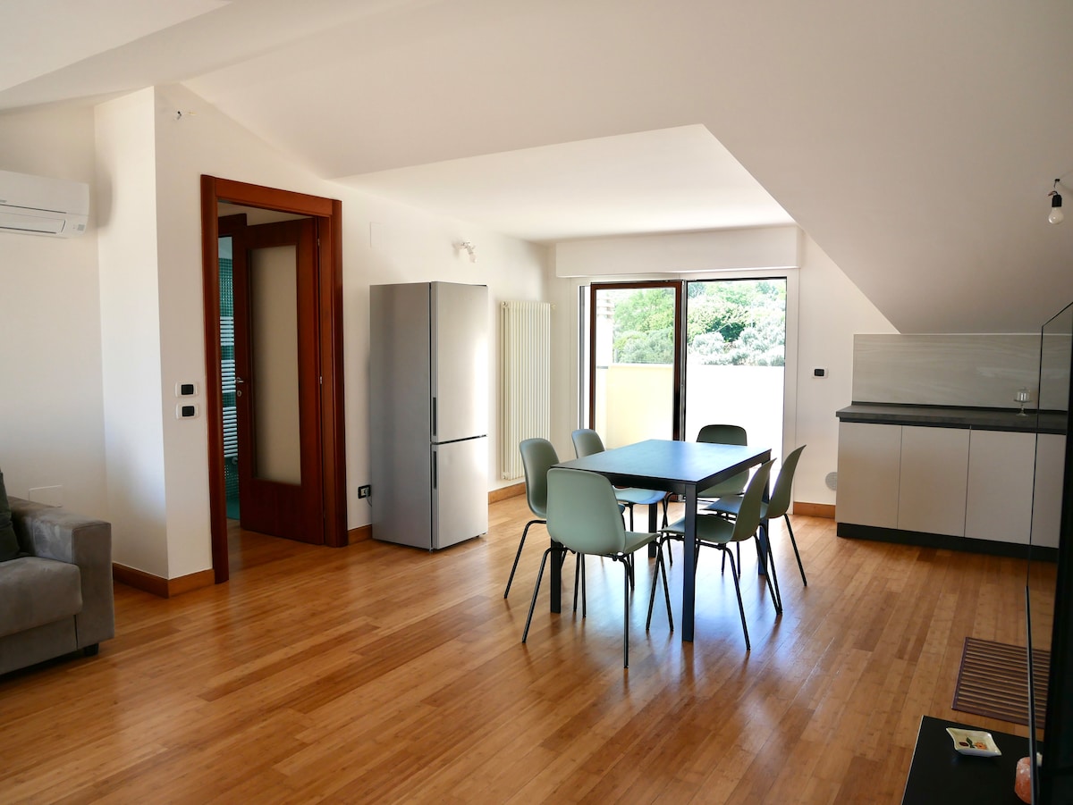 Apartment located on the top floor of a 2-story building. Strategic location given the proximity to the Pescara Nord highway exit (1 km), 100 m from the Villa Serena hospital complex, 2 km from the beaches of Montesilvano and Silvi Marina. Points of interest nearby: -Palacongressi of Montesilvano - Village of Città Sant'Angelo - Pescara Nord Shopping Center - Città Sant'Angelo Outlet Village - Pescara - Torre di Cerrano