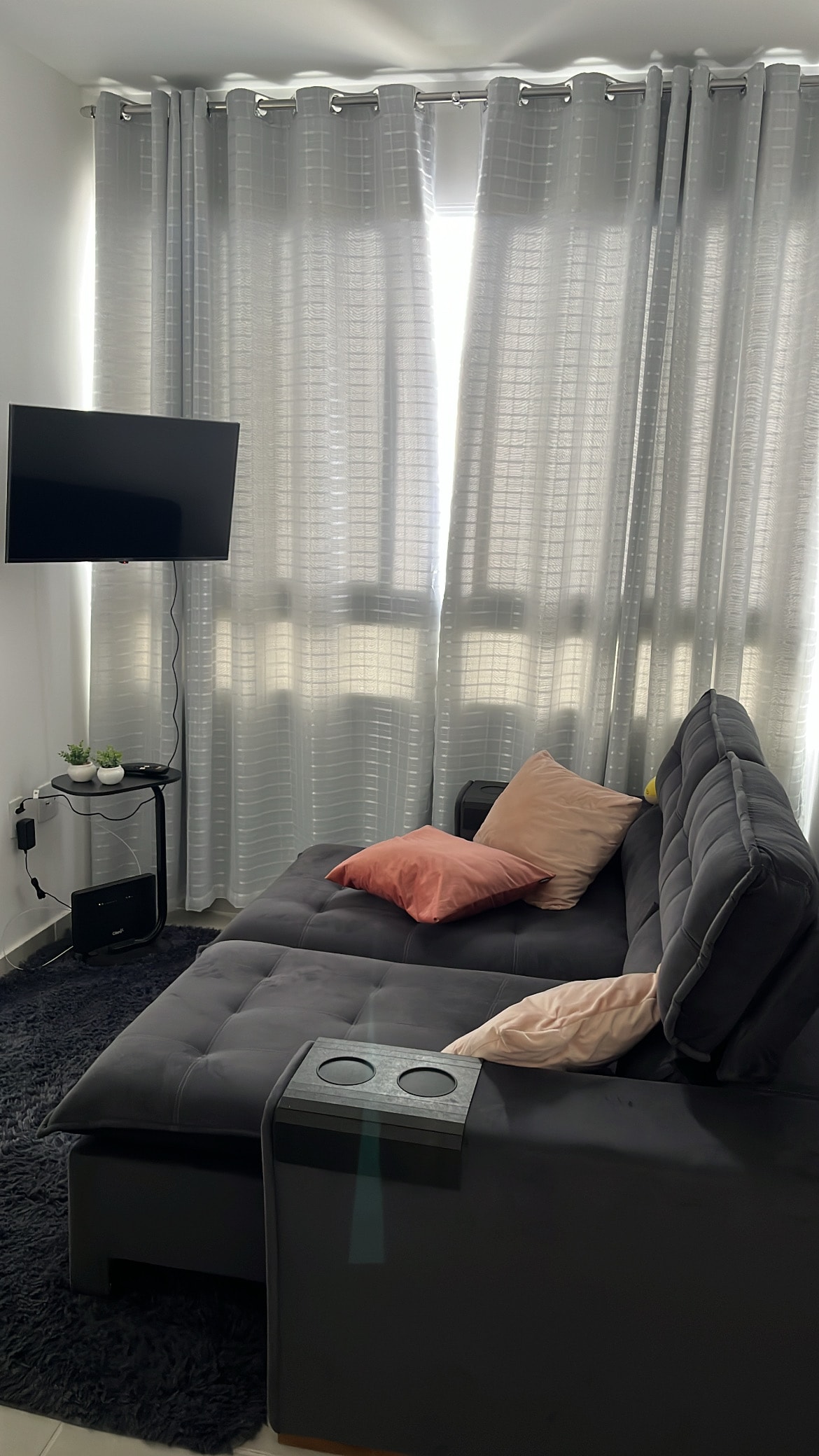 Well located and comfortable apartment, it has a great view. Peaceful and family atmosphere. Everything was very well arranged and organized. It has electronic security, automated commands with Alexa, close to markets, pharmacy and fitness center. Easy access to the city center. Everything is designed for the comfort of the guests. Make a quiet accommodation!