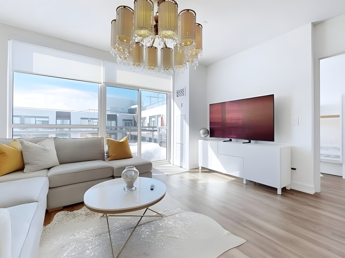 Step into lakeside luxury at Friday Harbour Resort! Enjoy a brand-new, 820 sq. ft. professionally decorated Penthouse with a private balcony, and endless amenities, from live music on the pier to Starbucks, LCBO, to seasonal water sports and a golf course. Just an hour from Toronto, your perfect getaway awaits! Professionally decorated with 10-foot ceilings, this suite is designed for comfort and style: Primary Bedroom: Queen bed with ensuite bathroom Second Bedroom :Bunk bed with Trundle.