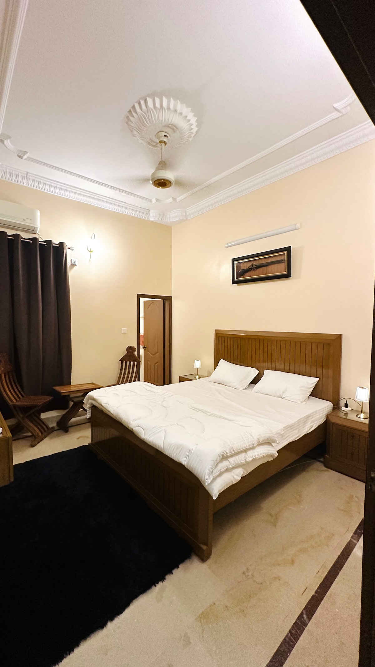 This stylish place to stay is perfect for group trips. Centrally located in defence phase 6 . This apartment is newly furnished with the team of architects and interior designer which gives the best comfort at this place . The bedroom room size is spacious and enormous. This is 1980 sqft , 2 king size bedroom along with 02 tV lounge area , 02 dinning area. In this space maximum 8 persons can accommodate.
