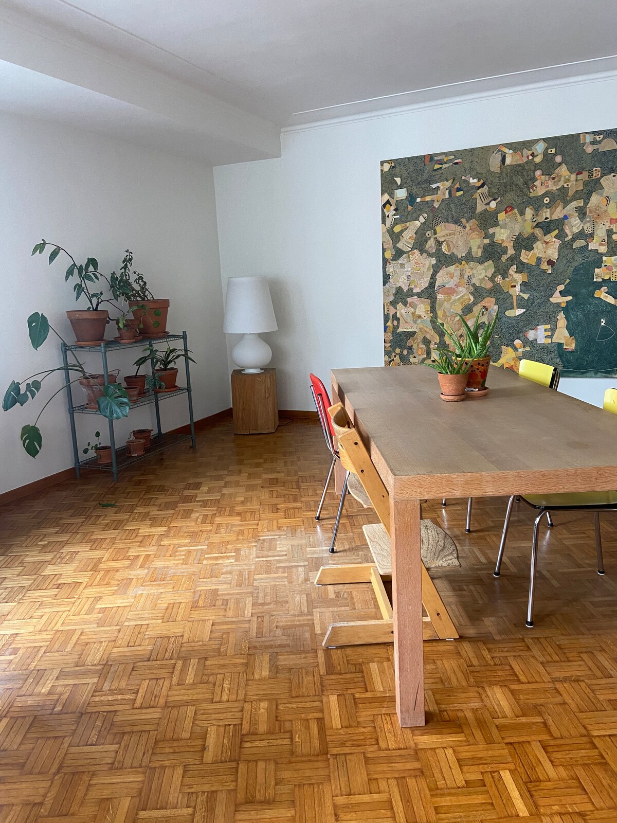 This is a sunny haven for the world-wise traveler, located right in the heart of Brussels (Metro GrandPlace-Bourse). From the 6th floor you overlook Sq Ste-Catherine and the bell tower. The area is surrounded by designer shops, gastronomic restaurants, a bio-market, and all the iconic cultural things to do. But there’s more to its central location: The flat is bright, free of clutter, and well laid. On the balcony grow aromatic herbs & evergreens. Enjoy the eco-feel in the midst of urban buz!