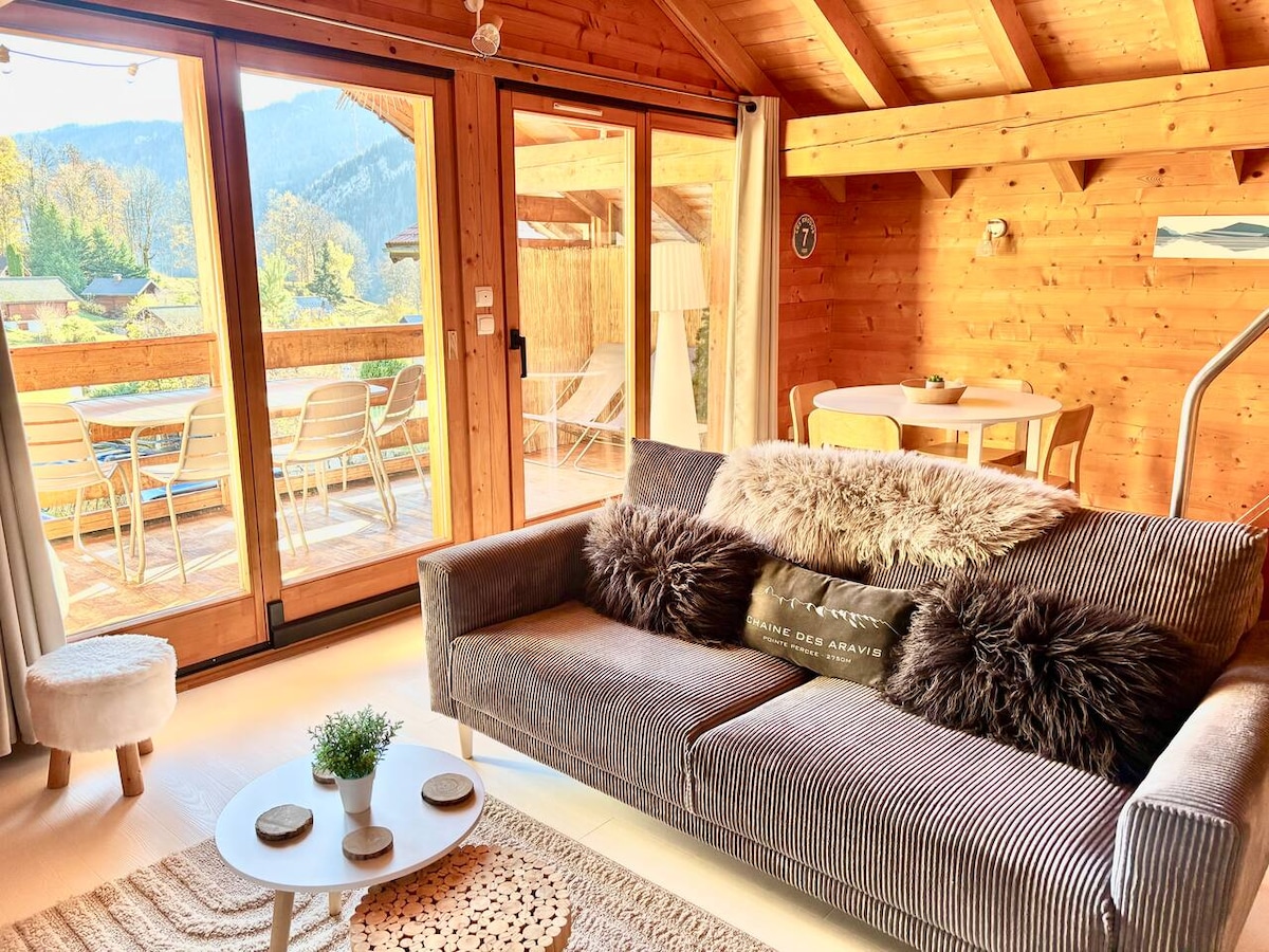 Rated 4* tourist cottage in 2024 **** Glamorous atmosphere facing the mountain: master suite, sauna, bathtub for 2 people, huge walk-in shower... On the ground floor of a chalet 15 minutes from the Manigod ski area (La Clusaz ski link), and 25 minutes from Annecy. The owner lives in the chalet above, but the cottage is completely independent and without common areas Free parking for 2 cars. Optional cleaning to be paid on site: €30.