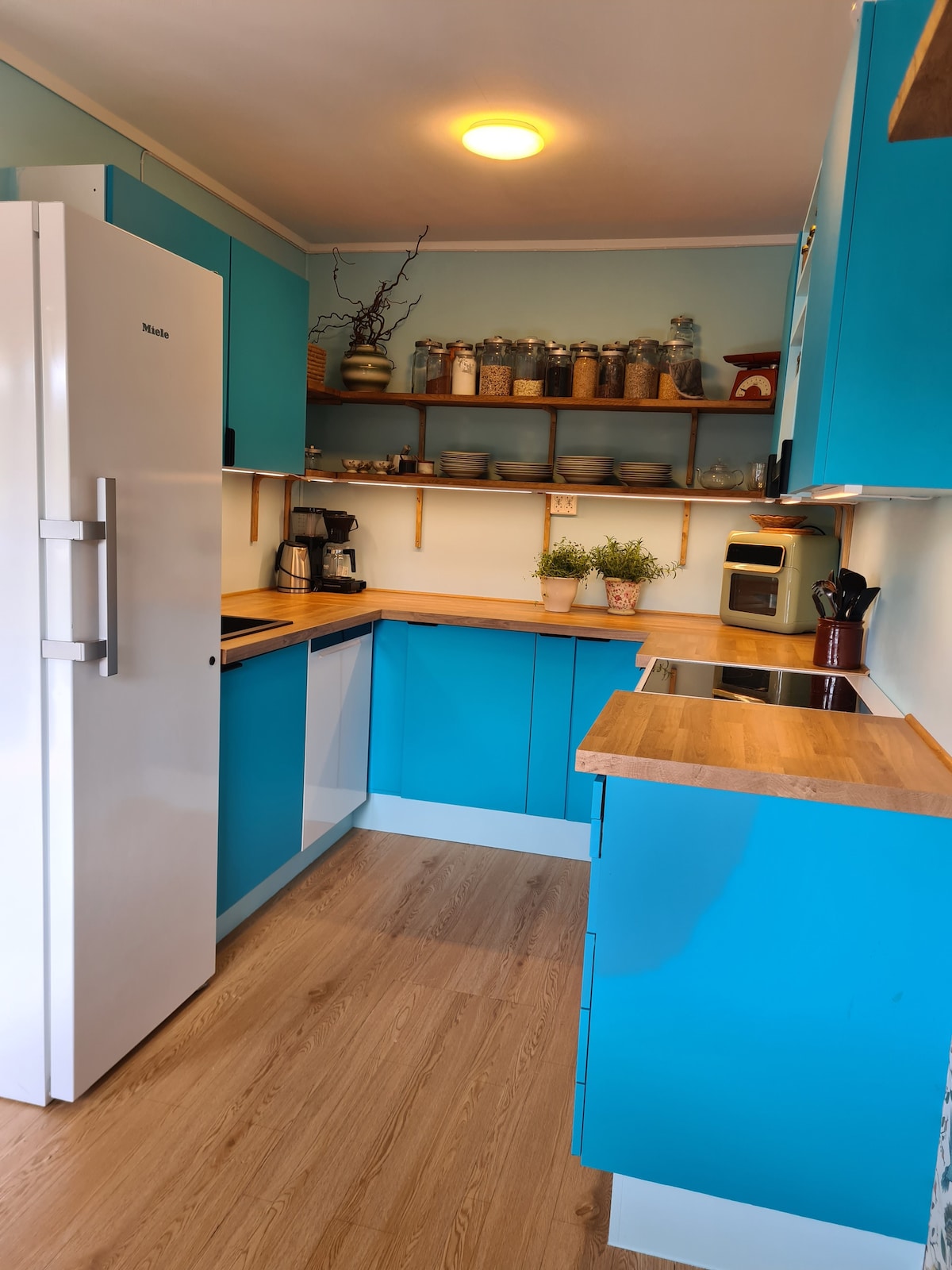 Apartment on the 1st floor, with plenty of space both outside and inside! The apartment is 80 sqm, has most of what you need and is nice and spacious. Located in the middle between Skien and Porsgrunn. 100m to bus stop, 300m to shop and good parking opportunities. The house is at the end of a cul-de-sac and has very little traffic. You park right at the front door and the electric car charger (type 2) is ready for use. Code lock on door for easy access. The apartment is equipped with a heat pump and underfloor heating.