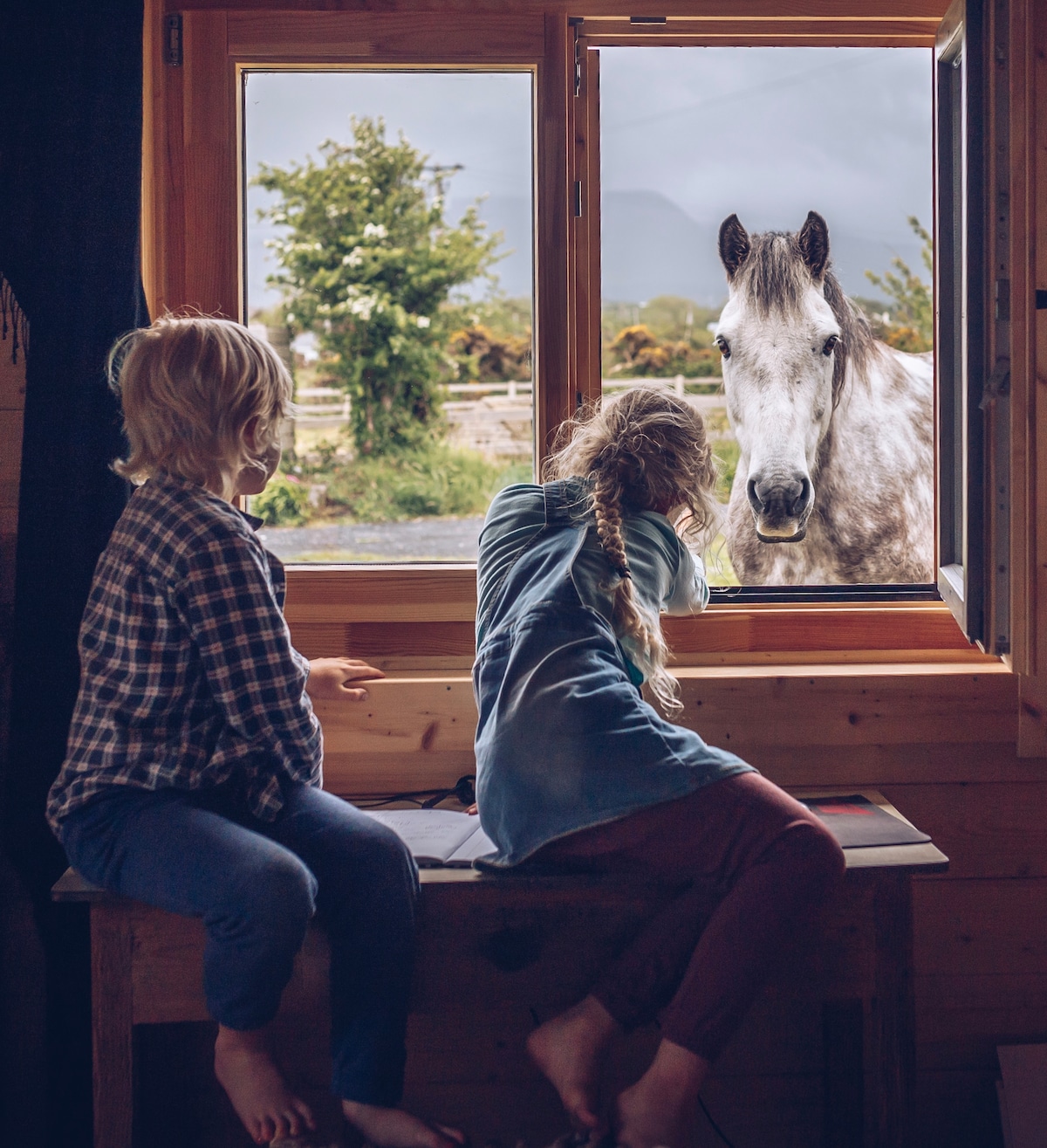 Tranquillity meets luxury glamping in our stunning IgluCabin, perched high in the hills near Geevagh, 20 mins from Sligo town. Sitting above the valley we are always stunned by the silence and sunsets that bless our location. The pod itself is beautifully designed in shiplap wood, the interior offers a cosy bedroom area, a kitchen with smart use of space, a living and dining area with lots of natural light from a panoramic window and a bathroom with shower. Traditional craftwork inside and out.