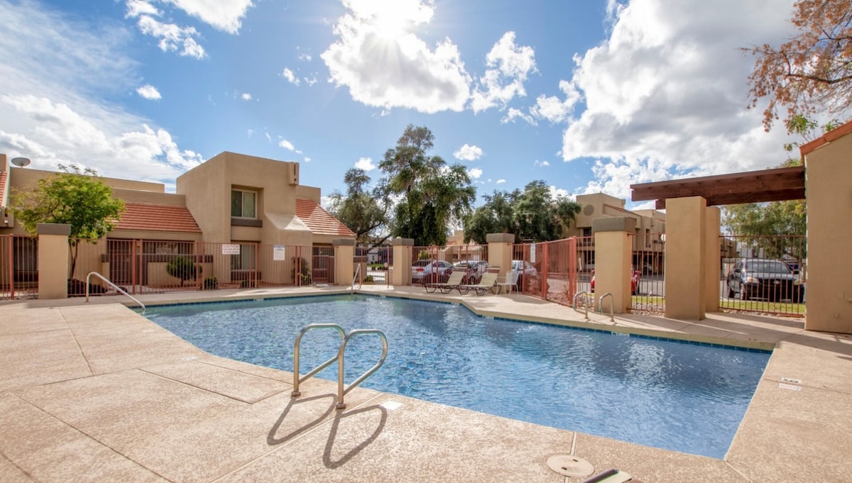 Modern and tastefully decorated first floor condo with 2 bedrooms and 2 in suite bathrooms in Tempe, Arizona. Located in a gated community with 2 pools and assigned covered parking space. Keyless entry unit with 3 small private patios, a 55” Smart TV, stainless steel appliances and quartz countertops in the kitchen. It has WiFi connection with fast internet. Just minutes from ASU and the CUBS Stadium; and close to the 101 and 202 freeways for easy access to the airport and other attractions.
