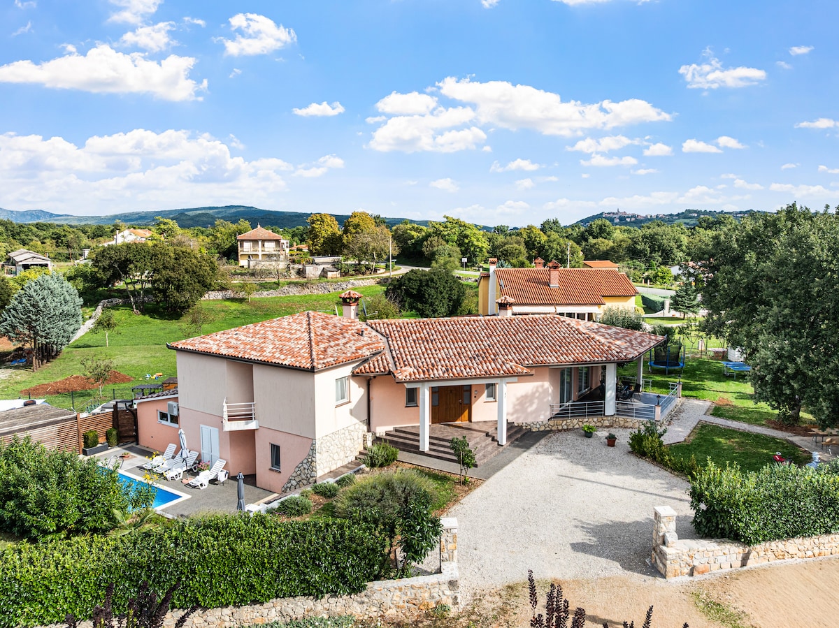 The One-Bedroom Vacation Home (semi-detached house) accommodates up to 4 people (2+2). It is located in a typical Istrian village with breathtaking views of Motovun and Central Istria green oasis. The house has a private heated swimming pool, air condition (cooling and heating), free wi-fi, smart cable tv, private parking and is a short drive away from all the main tourist and historic attractions of Istria. Since 2024, the house has its own power plant, so it is energy self - sustaining.