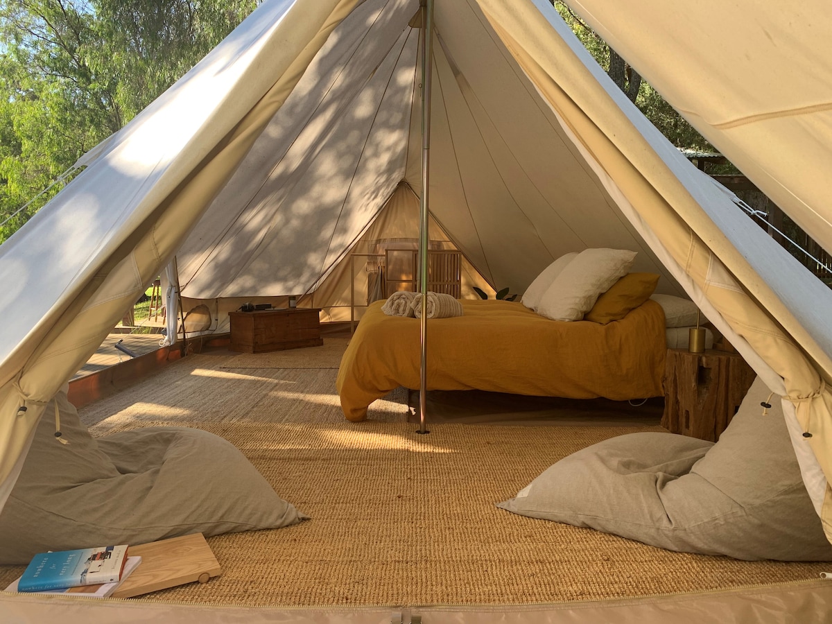 A single, architecturally designed timber cabin, nestled into the trees by the lake, overlooking our certified organic vineyard. Ample amounts of natural light filter through the trees with vineyard & farmland views framed by each window. The stunning waterfall window in the bedroom connects the inside with the out, creating a memorable feature & allowing you to sleep under the stars. Please note the cabin is an adults only retreat.