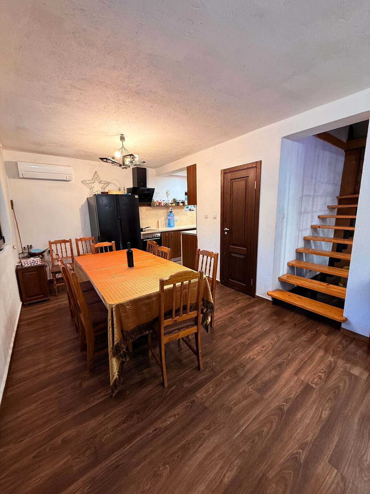 The apartment is located in the center of Smolyan. It has a fully equipped kitchen, washing machine and dryer. There's a spacious living room with a sofa bed, three bedrooms, two toilets, and a bathroom. The rooms are equipped with air conditioning, TV and internet. The apartment provides bed linen, towels, disposable slippers, toothbrushes, and body cosmetics. It is close to the Planetarium, the Church of St. Visarion Smolenski", Rhodope Drama Theater, several restaurants and a "Bila" shop.