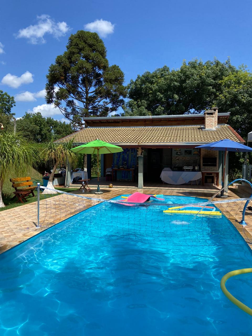 Experience unforgettable moments in this unique place, ideal for your family. The Chácara has four suites and two toilets, a complete gourmet area, billiard table, playground, soccer field, sand court, solar heated swimming pool with jacuzzi, hammocks, outdoor fireplace, a small lake, and a beautiful waterfall facing the pool, a unique place to rest and enjoy unforgettable moments with friends and family.