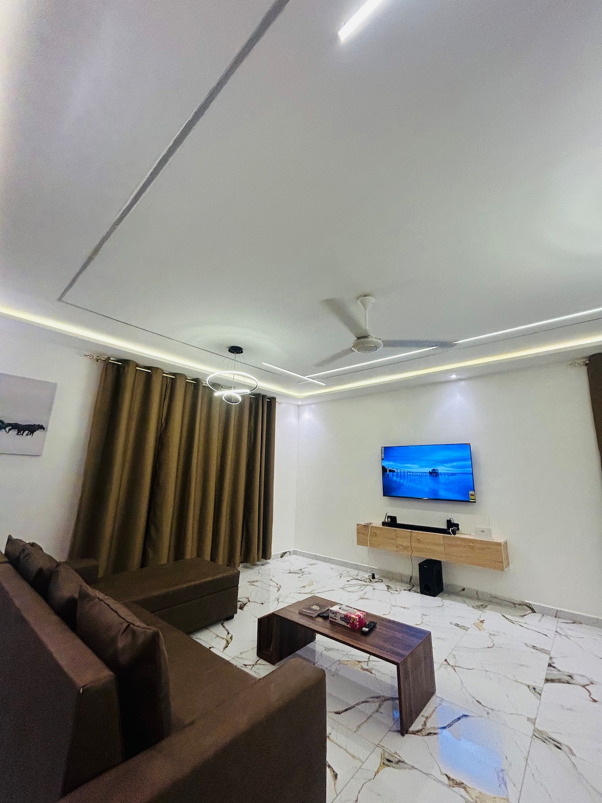 Modern 2-bedroom Airbnb in Ho with ensuite master, second bedroom and bathroom. Ideal for families, couples, and business travelers. Features bright living room, TV, WiFi, fully equipped kitchen, secure compound, free parking, 24/7 water, and a private fish pond offering a peaceful, unique atmosphere for short or long stays.
