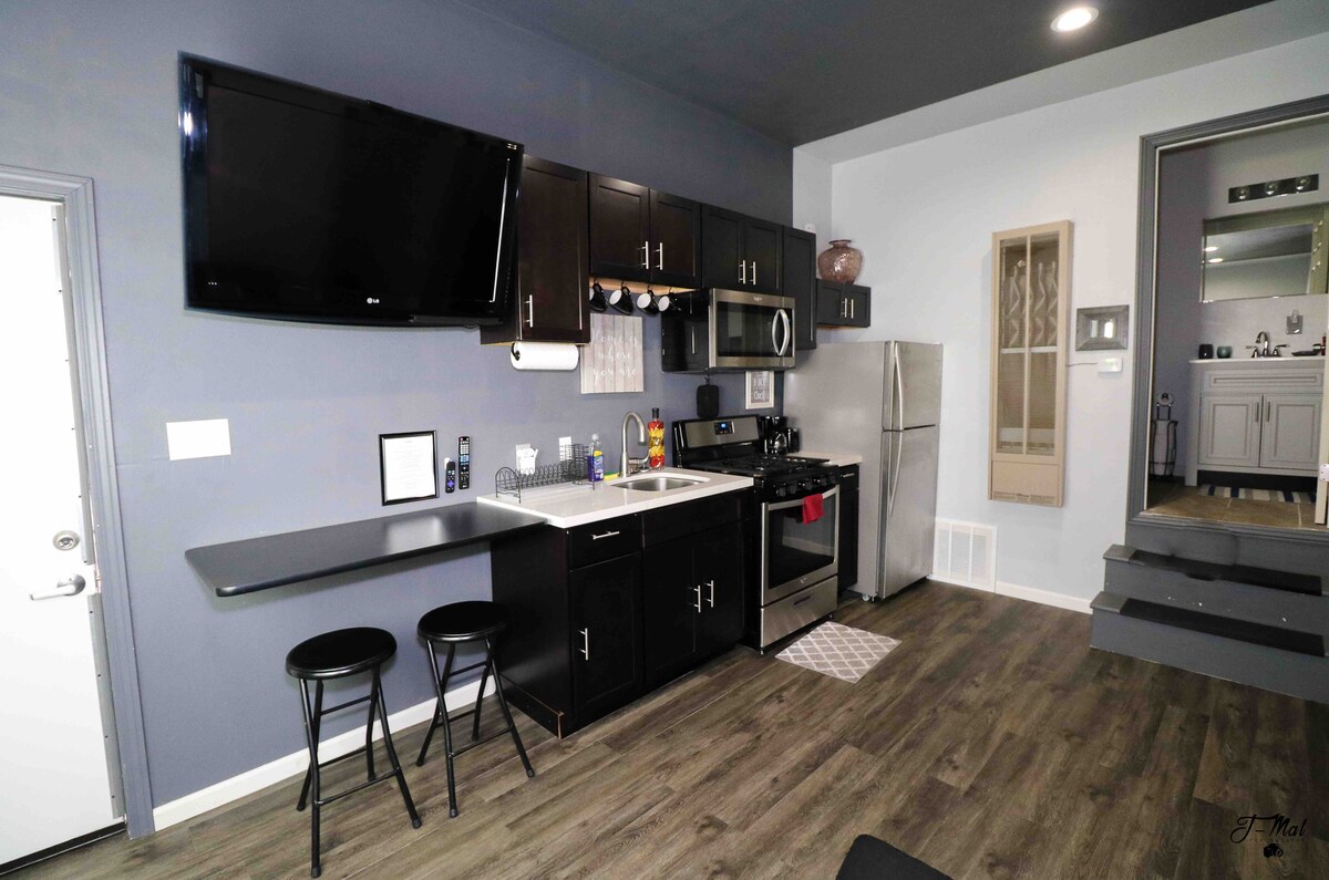 "New" (2021) construction and modern private studio located in a great neighborhood in the town of Vacaville in the East Bay Area. Private entrance and easy street parking. Full kitchen with a coffee maker, eating/desk area with bar stools, bedroom area with a KING sized bed, 1 full bathroom, washer/dryer in the unit. There is a flat screen TV in the living area and complimentary fast Wi-Fi. We have soft water too.