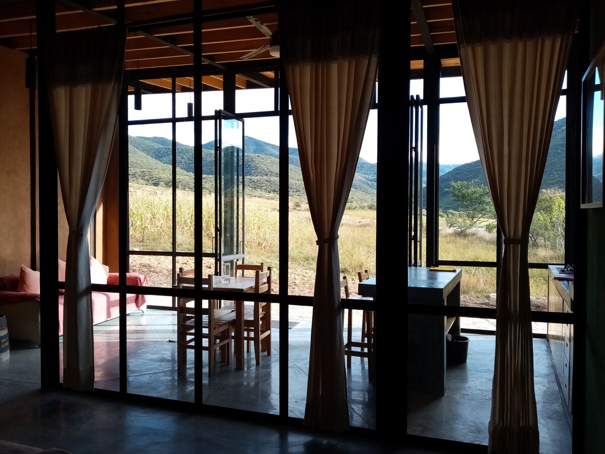 Welcome to the Wooden Box. Experience an authentic Mexican village! Stay at a Scandinavian-inspired home right in the middle of the mountains. Taste a bit of small-town Mexican life and enjoy the culture in the village or lay back on a hammock in the shade all day. Make our house your base to explore Oaxaca!
