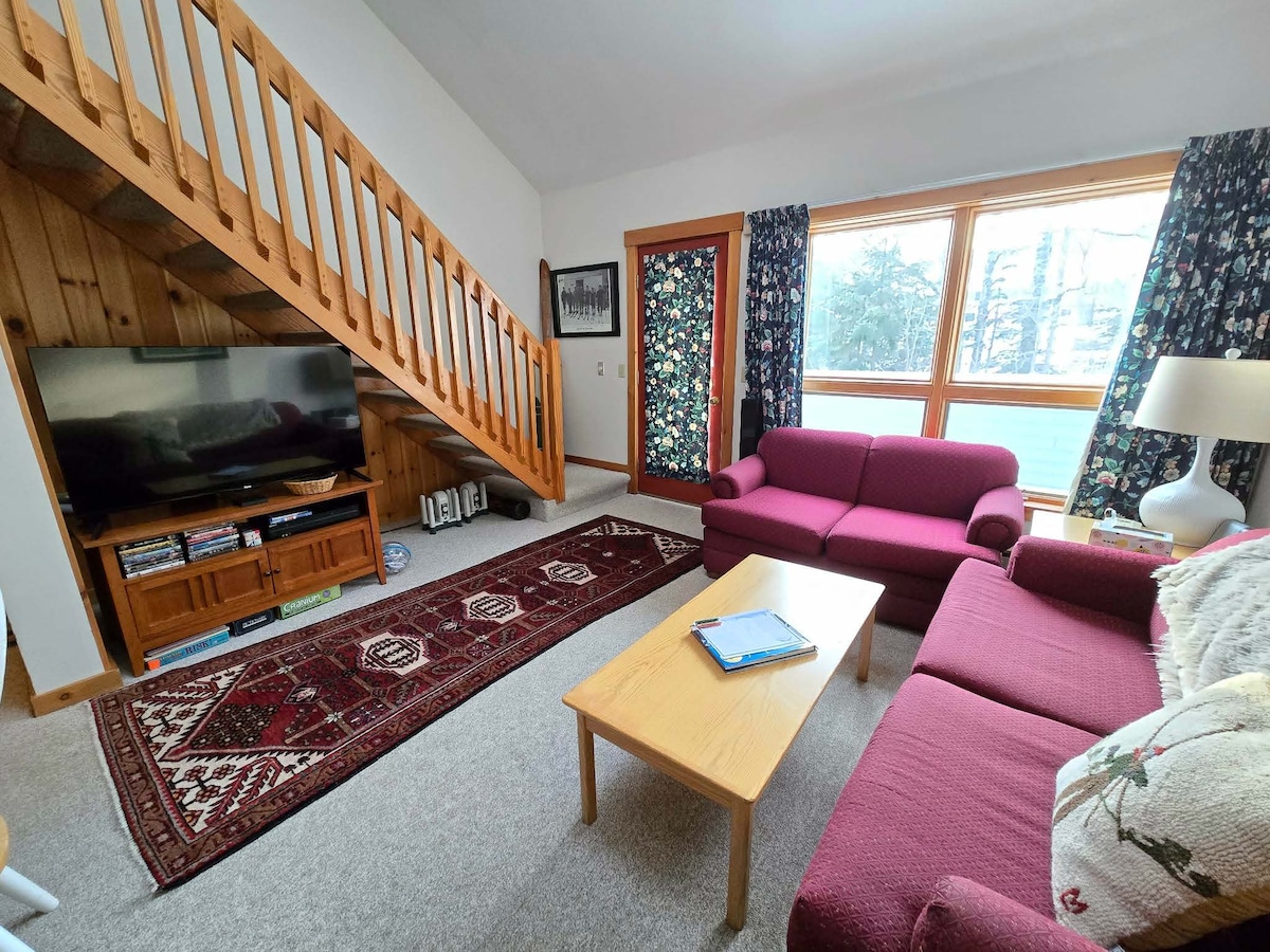 Cozy condo get-away that sits RIGHT next to condo access trail (Snubber). This two level unit has 2 bedrooms, 2 full baths, plus a sleeping loft. Sleeping layout: 1) queen bed; 2) bunk beds w trundle pull-out; Loft) queen bed. Gas-fireplace, sun room w view, WiFi, internet TV, and weekend hot tub access 12/21-4/13 (noon-9pm). Conveniently located just below mid-station lift and near shuttle stop. Activities all year: Skiing, X-Country, Snow Shoeing, Fat Biking, Mountain Biking, Golf, Hiking.