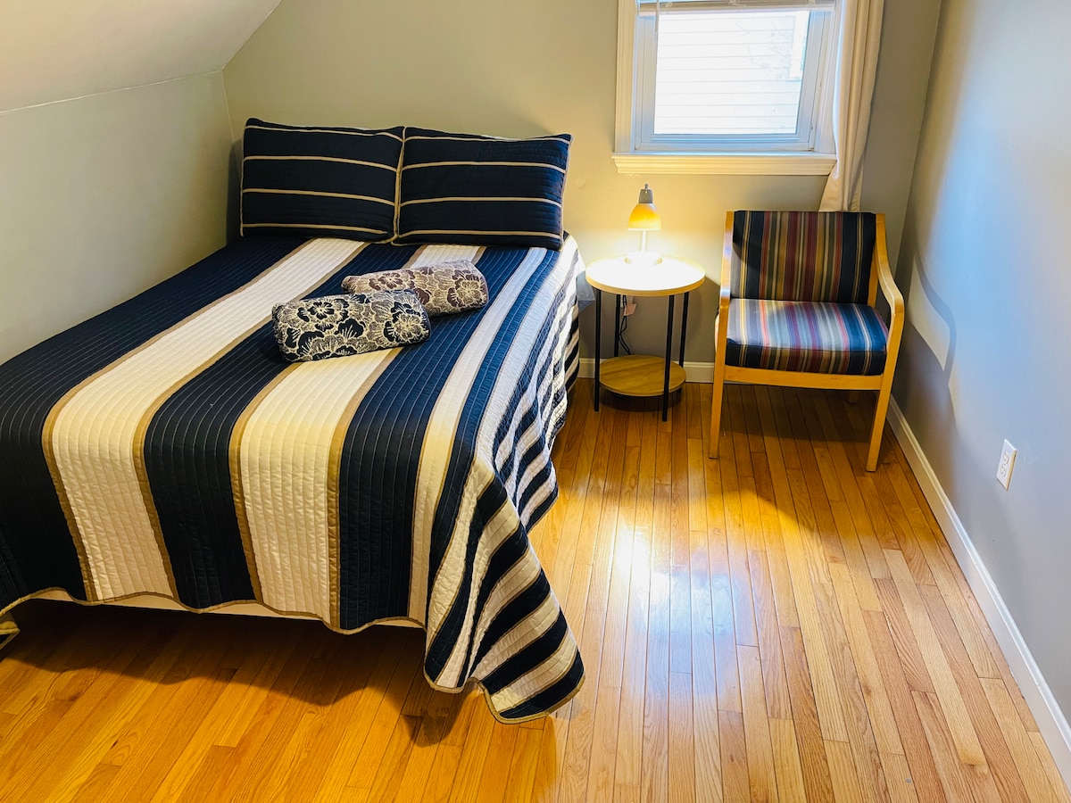 Five minutes walking distance to subway station. A newly renovated 2 family victorian home which is located in a diverse neighborhood where you can Walk to cafes, restaurants and parks. Neighborhood is a bike friendly and very close to Zip car. The room is very clean, comfortable and modern The Kichen and bathroom are also located on the same level and they are completely private. The shower stall is approx 3 feet x 4.5 feet. This private bedroom has a separate and convenient access/ exit.