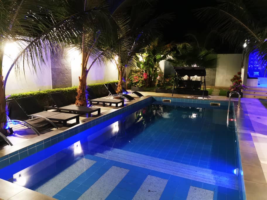 Enjoy a peaceful and refined stay in this elegant accommodation opposite the Movenpick Hotel, formerly Lamantin Beach, on the side of the road, in the heart of Saly, Senegal. The villa has 4 bedrooms with their own dressing room and private bathroom. Our pool is also superb, 10 m long and spacious, with large garden furniture for your relaxation, barbecue and other moments, around a flower garden with the possibility of heating the pool.