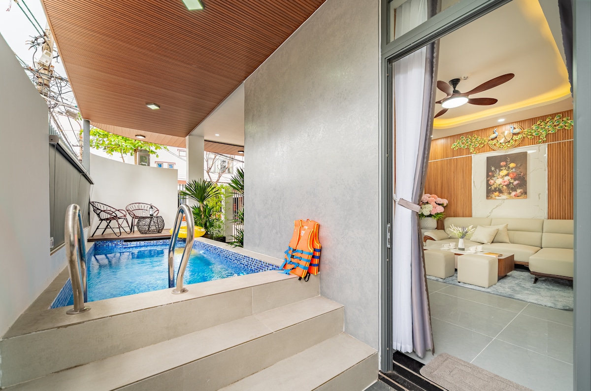 Ultimate retreat in stunning villa, complete with lavish pool & three private bedrooms. Located on Nguyen Dinh Hoan villa street, prime location offers easy access Han river, bridges & beach. Step inside & experience pure comfort & elegance. It features new&luxurious furnishings, full air conditioning in bedrooms, living room, dining area & kitchen. Outside, indulge in fantastic BBQ area, perfect for large parties. We provide mini bar stocked various soft drink&snack& convenient breakfast option
