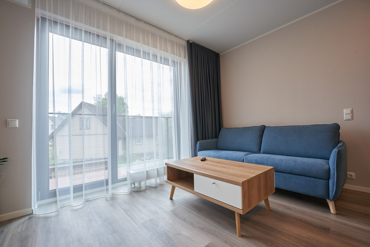 My cozy, romantic apartment is located at the heart of Tartu, in the shore of river Emajõgi. All of the city sights, bars/cafes and restaurants are within a 5-10 minute walk. The energy saving house and was built in 2020. You have 60 m2 apartment in 2 foors with sauna and balcony. Kitchen and bedroom 1st floor and sauna with romantic relax room in the 2st floor . Apartment is in the 1st floor of the building.