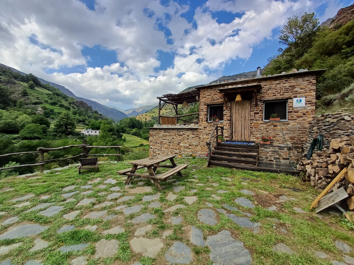 It is a traditional house located on the edge of the village overlooking the highest peaks of the peninsula, Mulhacén 3482 and Veleta. Be careful with your mobility because there are many slopes in the village and stairs in the house. During summer on the "terrace" there may be flies and smells of cattle because there is a goat pen nearby. You can park or use the small parking lot of Las Espeñuelas for loading and unloading, which is 15 meters from the house, but first make sure you can drive.