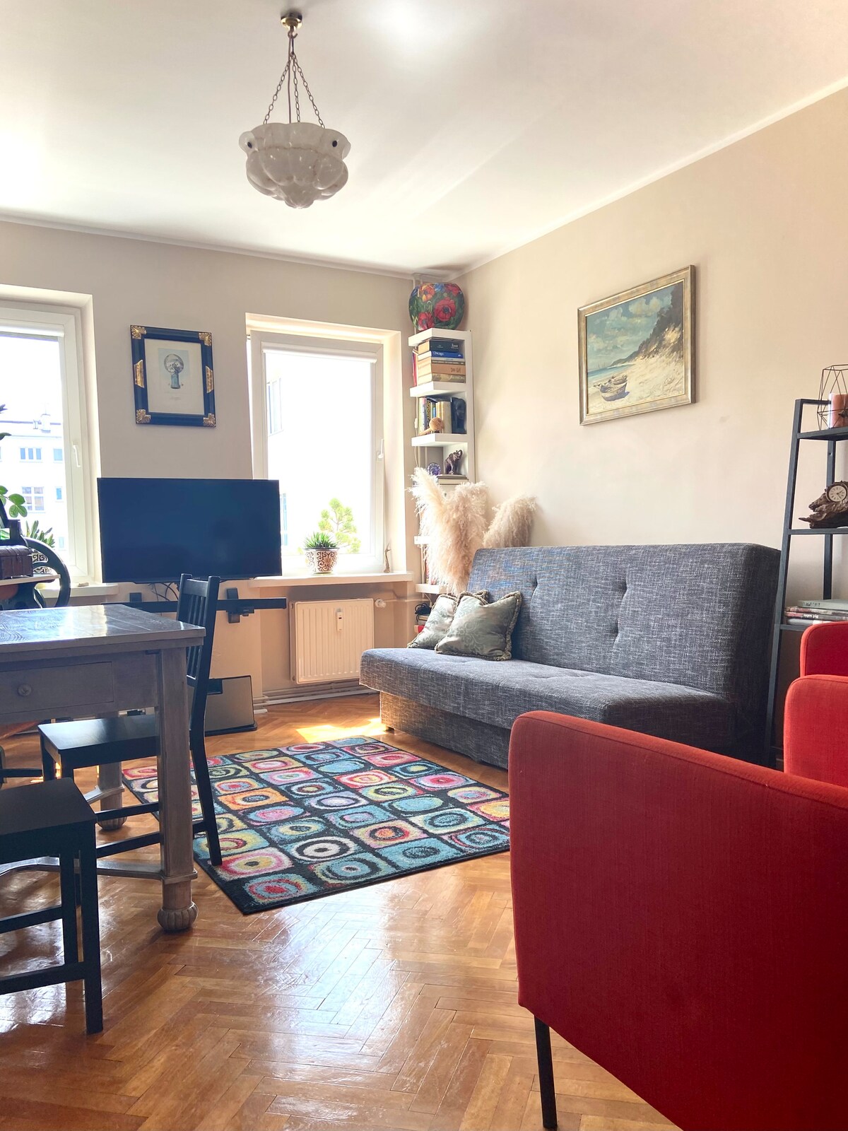 Hi! You are welcome to stay at my bright and spacious apartment situated in the loveliest district of Gdynia. Gdynia Orlowo is magic place of houses and villas next to cliff. The apartment is 50 m2 and consists of 1 bedroom, 1 living-room with kitchen and 1 bathroom, just 500 m from the beach. Please read the detailed description to get to know the magic of my place and my idea of renting. See you in Gdynia, Monika:)