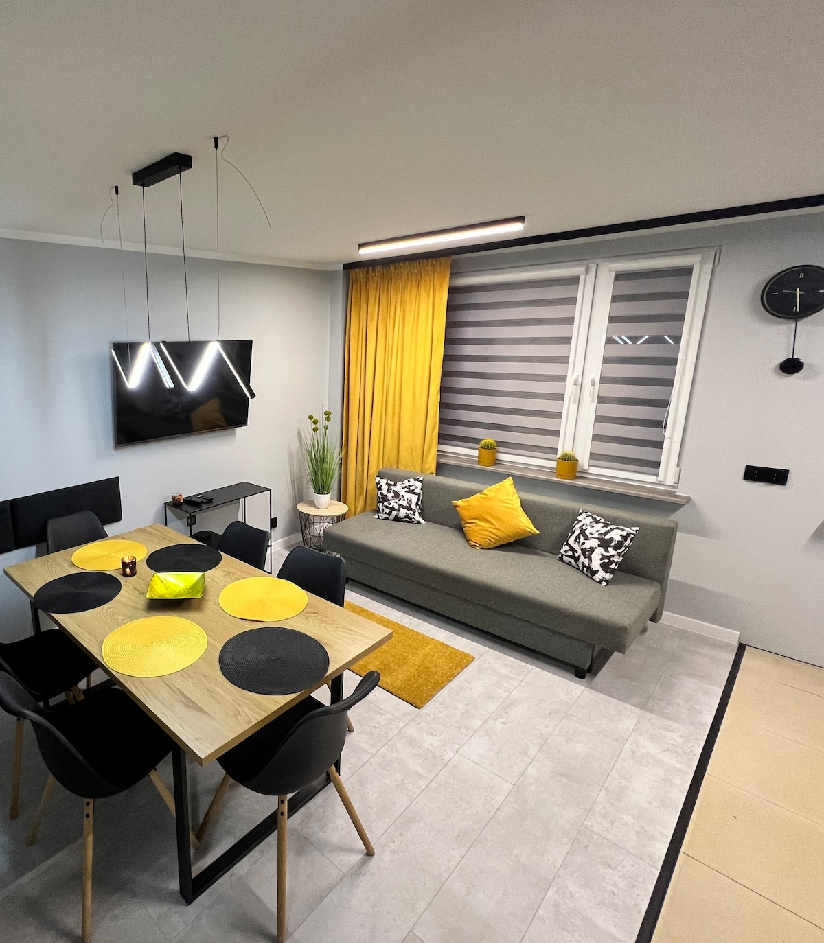 Twój dom z dala od domu - komfortowy apartament w spokojnej okolicy Zapraszamy do naszego przytulnego apartamentu, idealnego dla osób poszukujących komfortowego zakwaterowania w spokojnej okolicy. Apartament znajduje się na zamkniętym osiedlu, w nowoczesnym budynku, zapewniając poczucie bezpieczeństwa i prywatności. Wnętrze apartamentu zostało starannie zaprojektowane z myślą o komforcie gości. W pełni wyposażona kuchnia pozwala na przygotowywanie własnych posiłków.