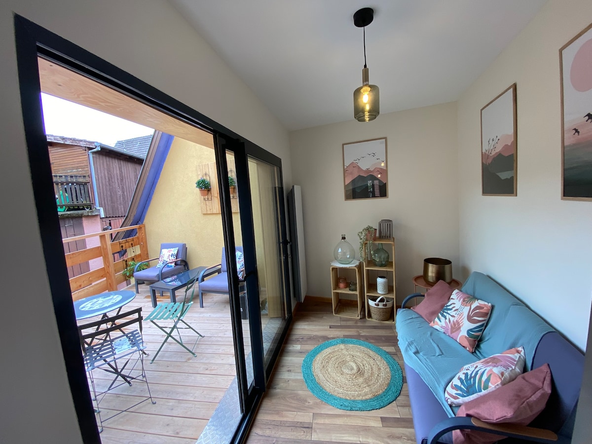 Close to the centre of Munster, discover a true natural interlude in a large, flower-filled garden. Enjoy two terraces, including a wooden terrace with patio overlooking the stream for moments of absolute calm to the sound of water and birds. Located in the heart of Alsace, in Munster, between vineyards, mountains and typical villages, it is an ideal starting point to discover the region. Cozy and bright cottage for two, open to the garden and the surrounding nature.